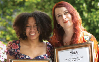 Frances Grail-Bingham ’24 and Cara Hernandez ’24, students in the Kathryn O. Greenberg Immigration Justice Clinic, received the CLEA Outstanding Clinic Team Award for successfully representing an elderly, long-term U.S. resident in his merits (trial-type) hearing before the New York Immigration Court.
